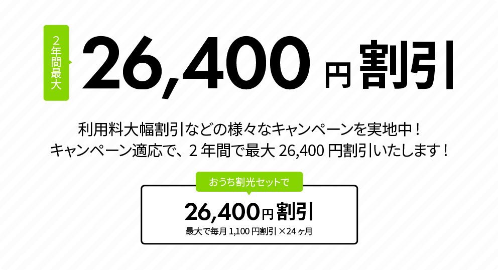 おうち割 光セットでは2年間、ソフトバンク携帯1台につき最大月額1,100円割引となります。