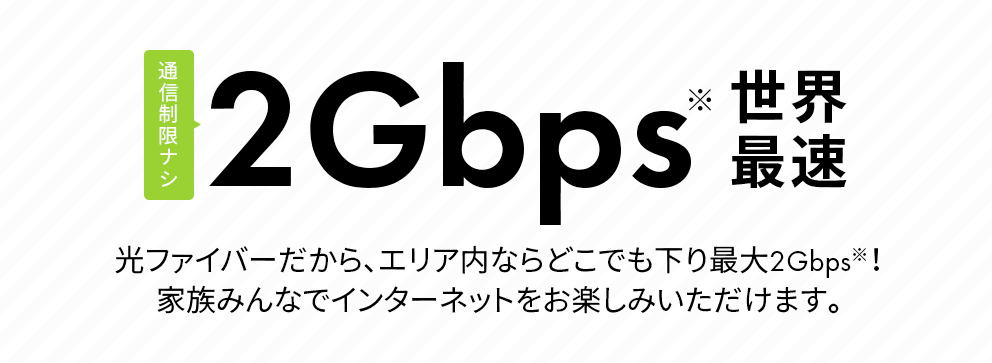 インターネット利用時の通信速度は、お客様のご利用環境、回線の混雑状況、建物の伝送方式などによって低下する場合があります。
